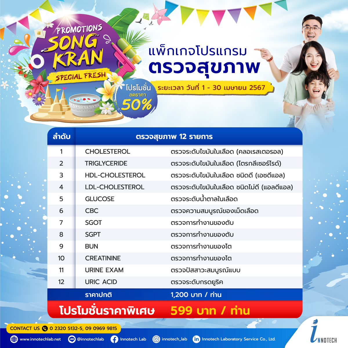 งดอาหารและเครื่องดื่มอย่างน้อย 8 – 10 ชั่วโมง ก่อนรับการตรวจสุขภาพ (ดื่มน้ำเปล่าได้)