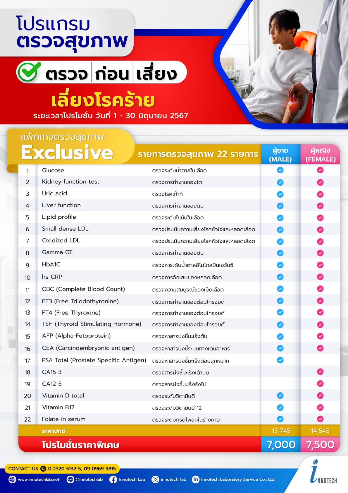 แพ็กเกจตรวจสุขภาพ Exclusive 22 รายการตรวจ